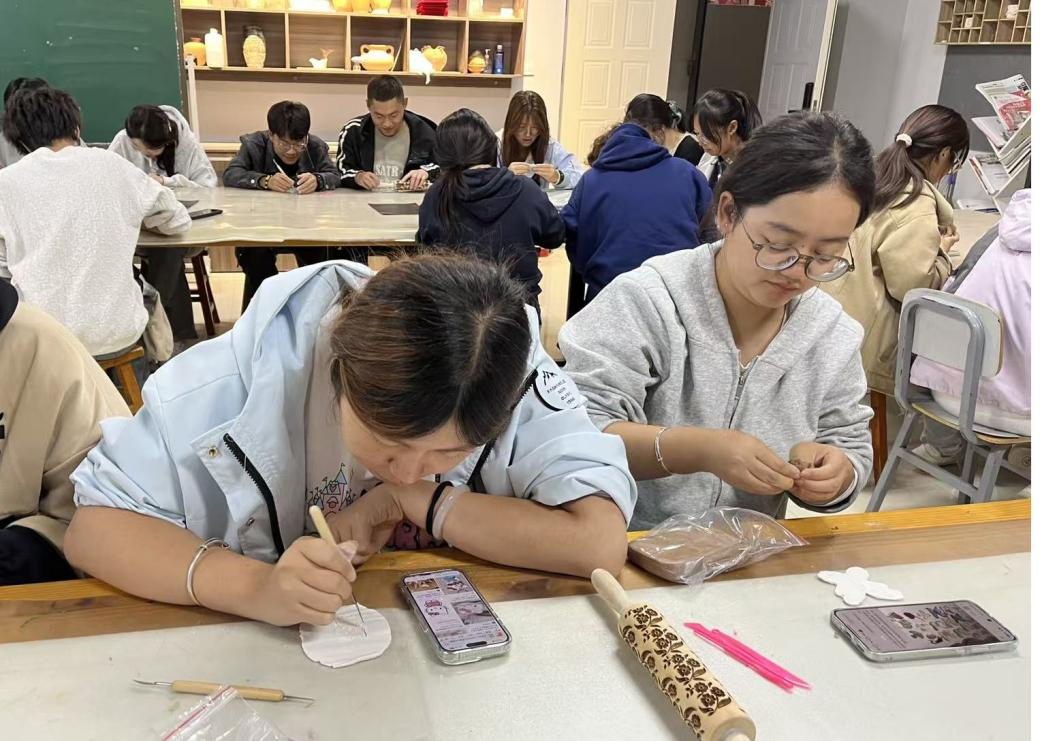 作为艺术学院“三全育人”和“五育并举”的特色项目之一,文创产品加工劳育基地持续面向全校学生开放,旨在通过陶艺、贺兰石雕刻、木艺等多种手工艺劳动,培养学生的劳动意识、审美素养与团队协作精神。