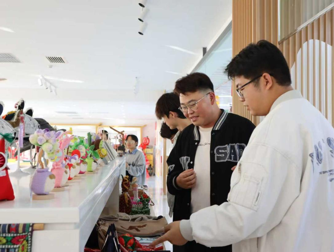 随后,师生们到访艺盟礼益文创,参观了银川市非物质文化遗产展示中心。企业聚焦于节日礼赠与文旅伴手礼市场,展示了多款融合刺绣、泥塑、皮艺、剪纸等非遗技艺的文创礼品。在讲解老师的指引下,学生们系统了解了银川非遗保护成果,从剪纸、皮影到黄河文化、民间戏曲,多元的非遗项目展现了地域文化的深厚积淀。许多学生表示,非遗技艺中蕴含的造物智慧与美学逻辑,能为自己今后的设计创作提供丰富灵感。