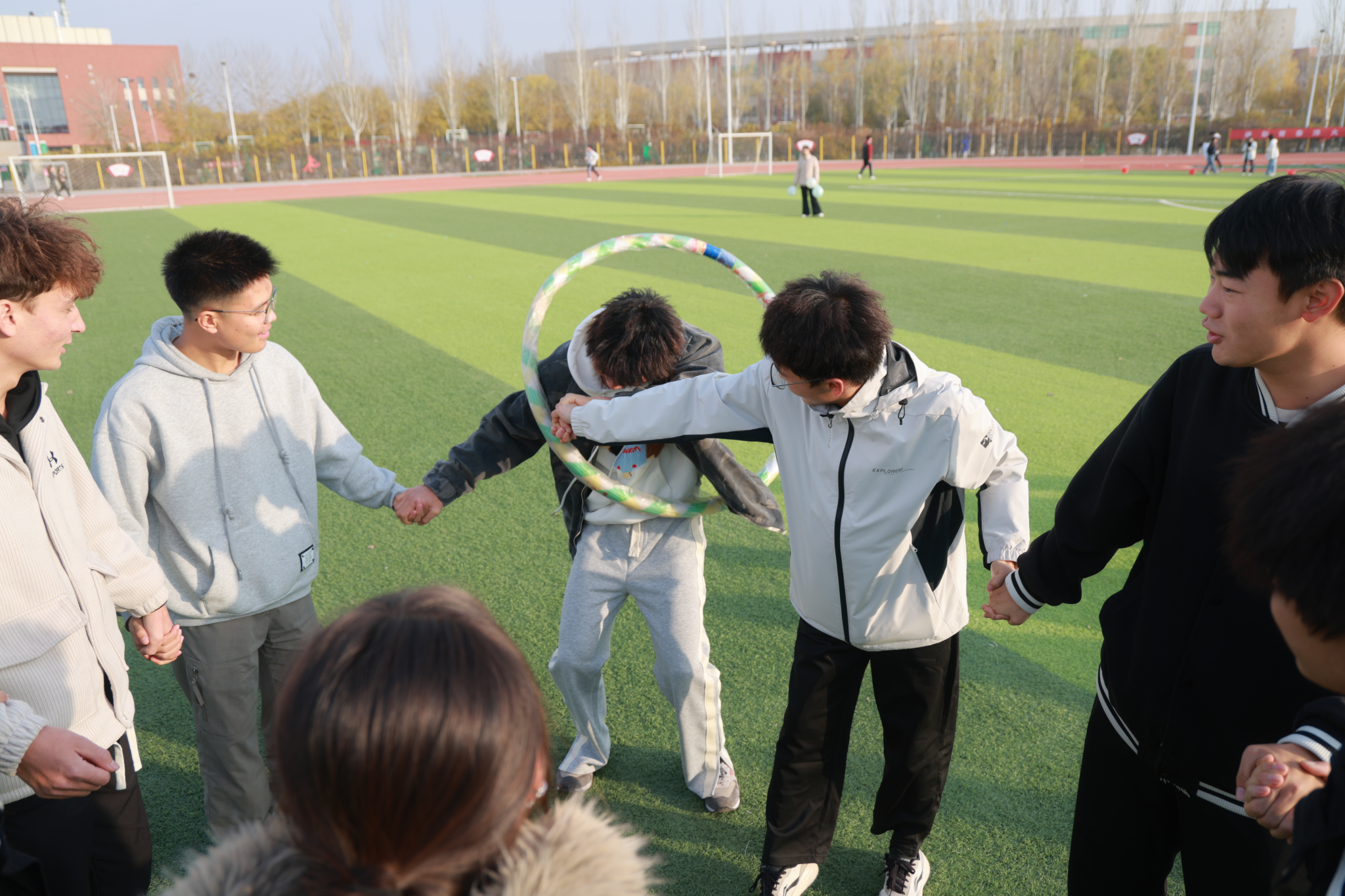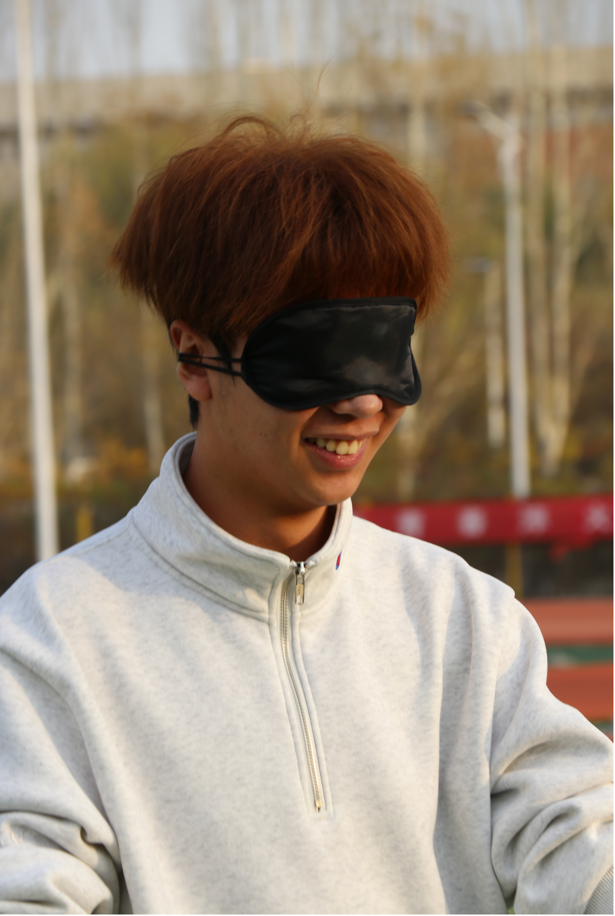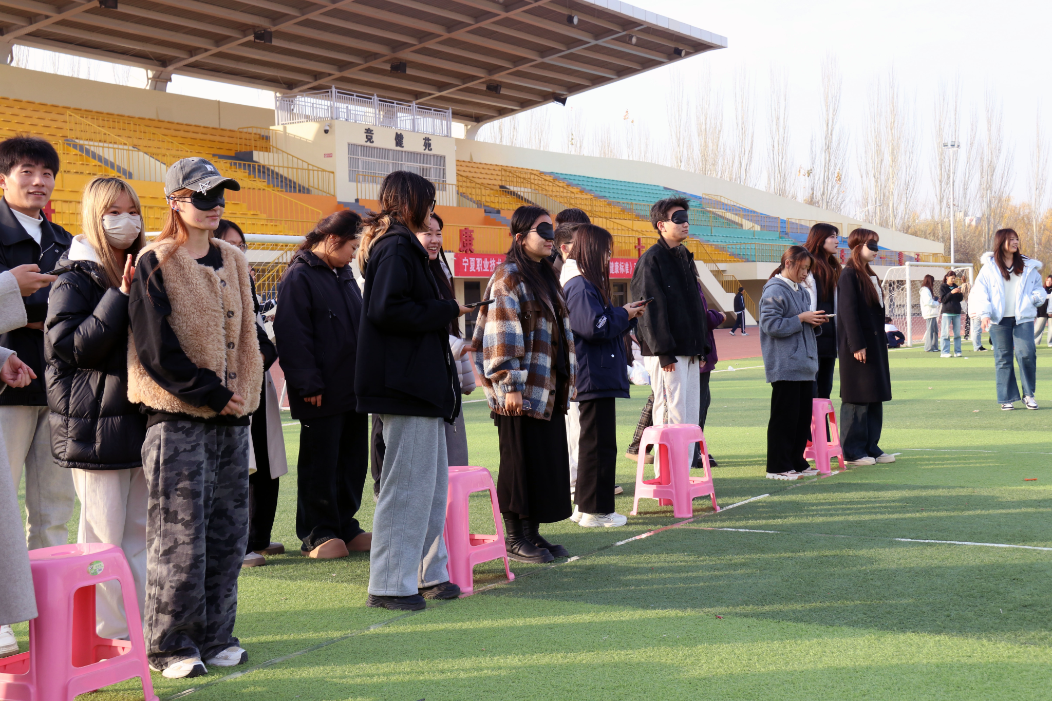 “蒙眼接力赛”则是一场关于信任的沉浸式体验。队员在黑暗中前行,完全依托同伴的指引。“向左半步”“放心走”,简单的指令承载着厚重的信任。在视线的遮蔽中,心与心的连接反而更加清晰,学子们在彼此的声音中找到方向,也在心理上建立起更坚实的支持纽带。
